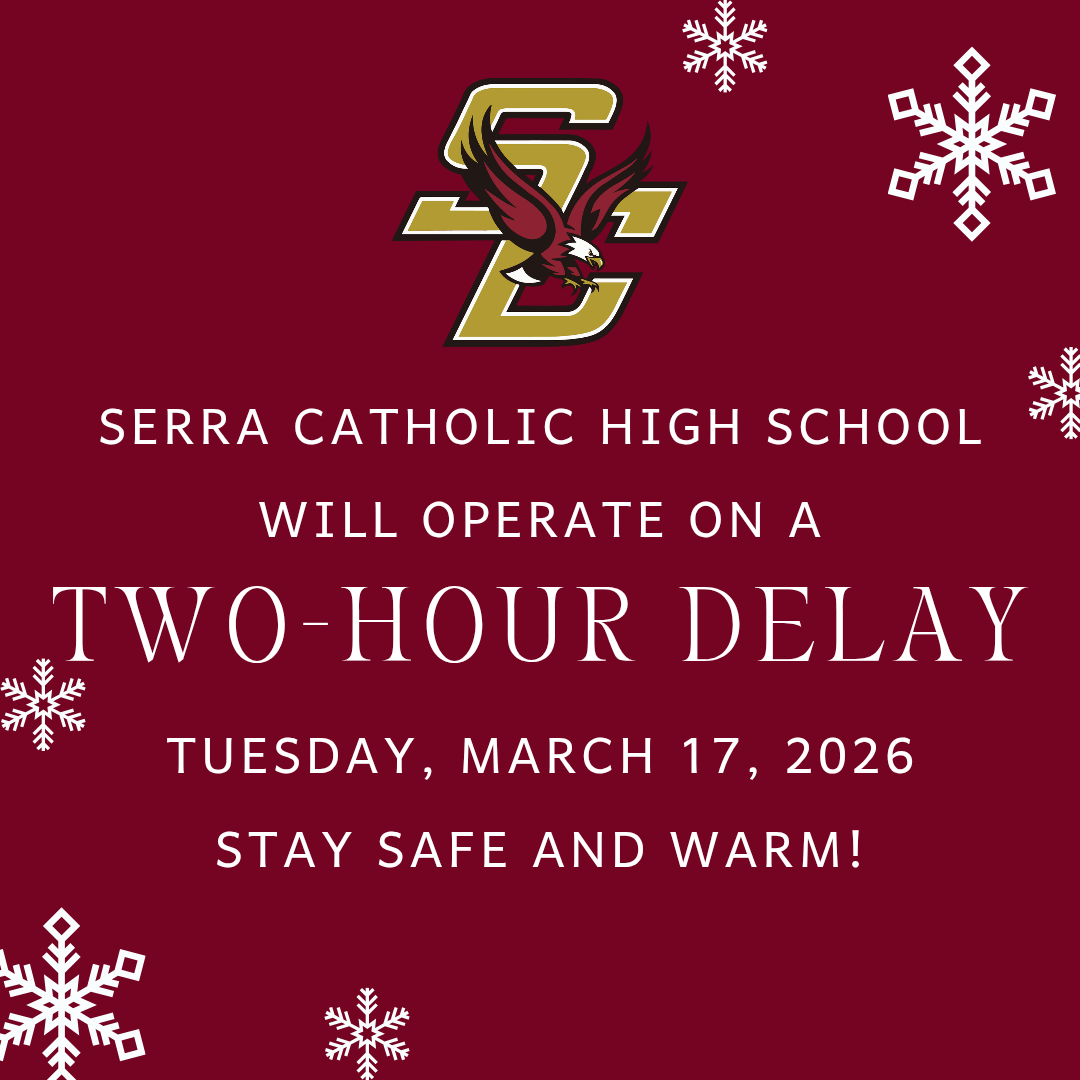 Serra Catholic High School will operate on a two-hour delay today - Tuesday, March 17, 2026. Students should report by 9:55 a.m.